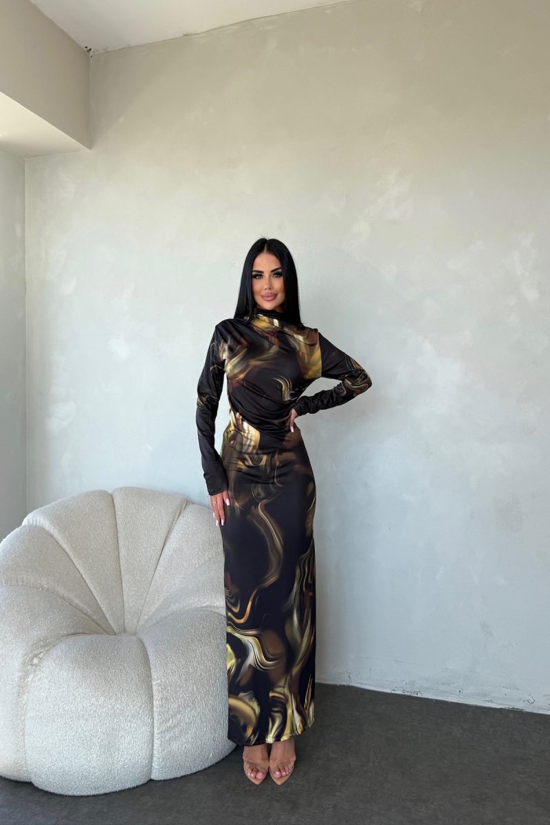 BİSİKLET YAKA DRAPELİ ELBİSE