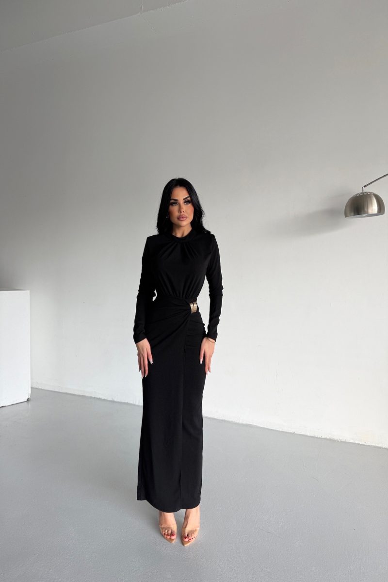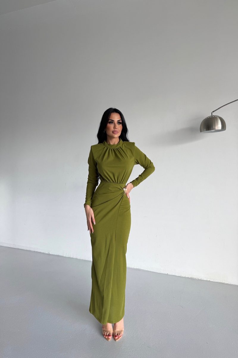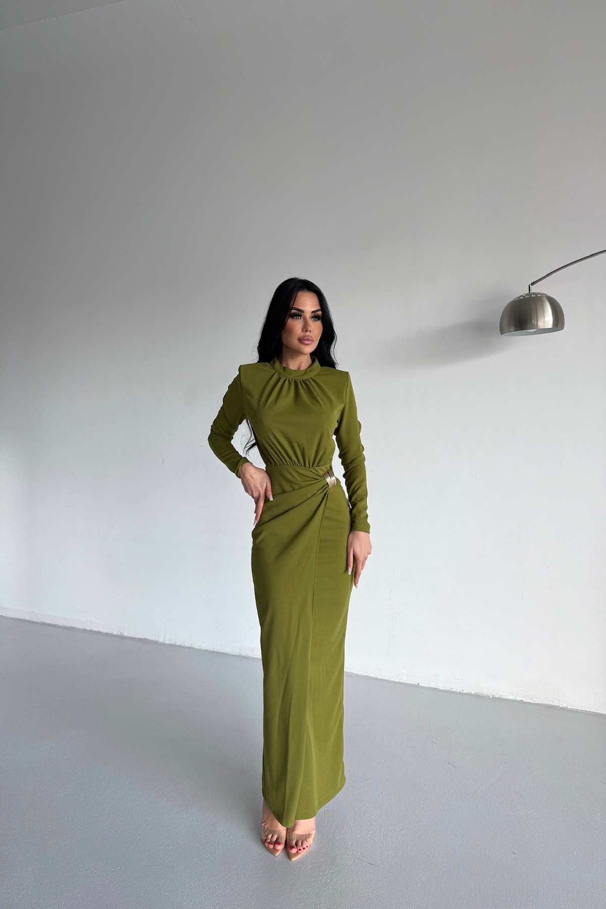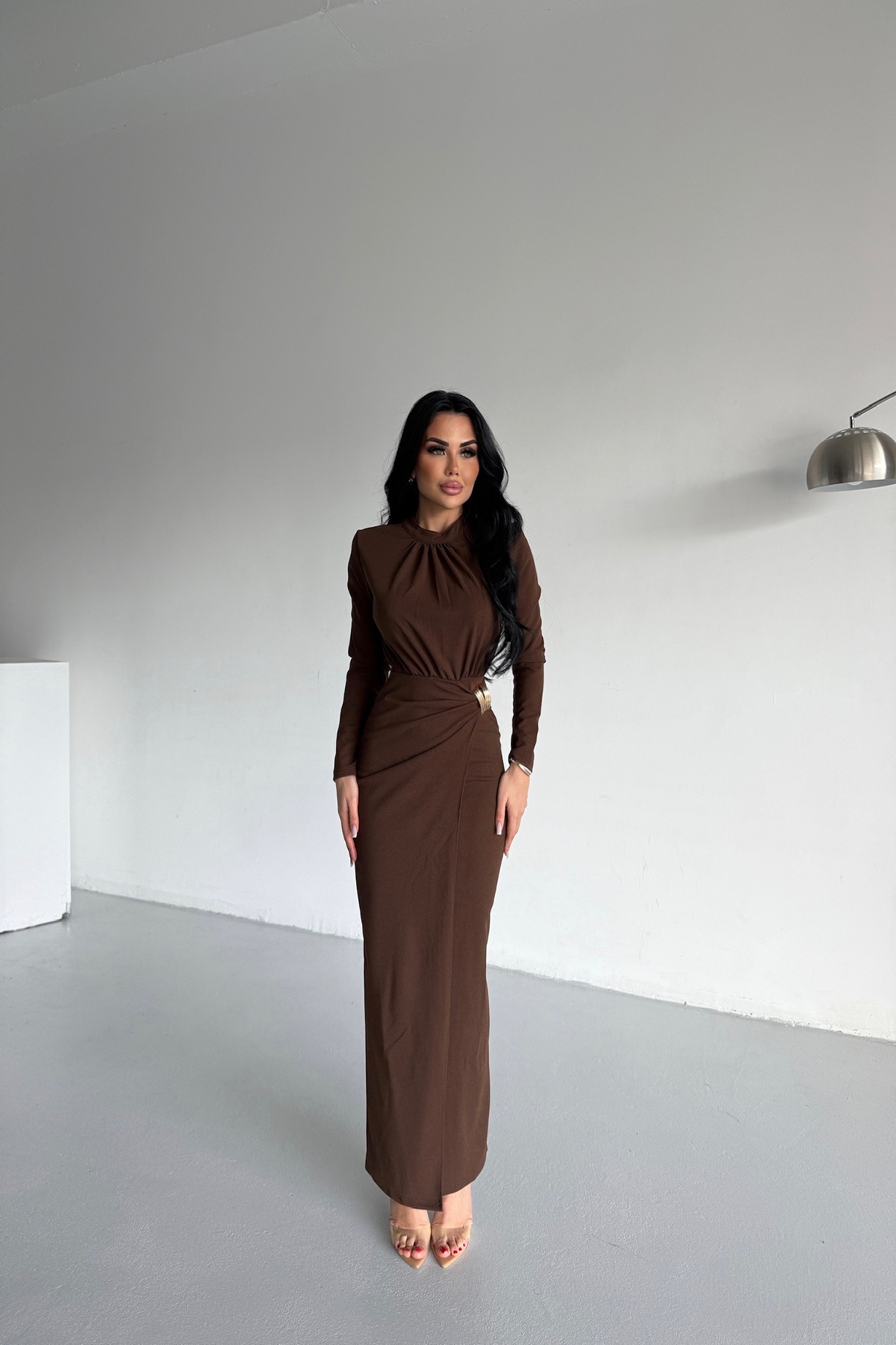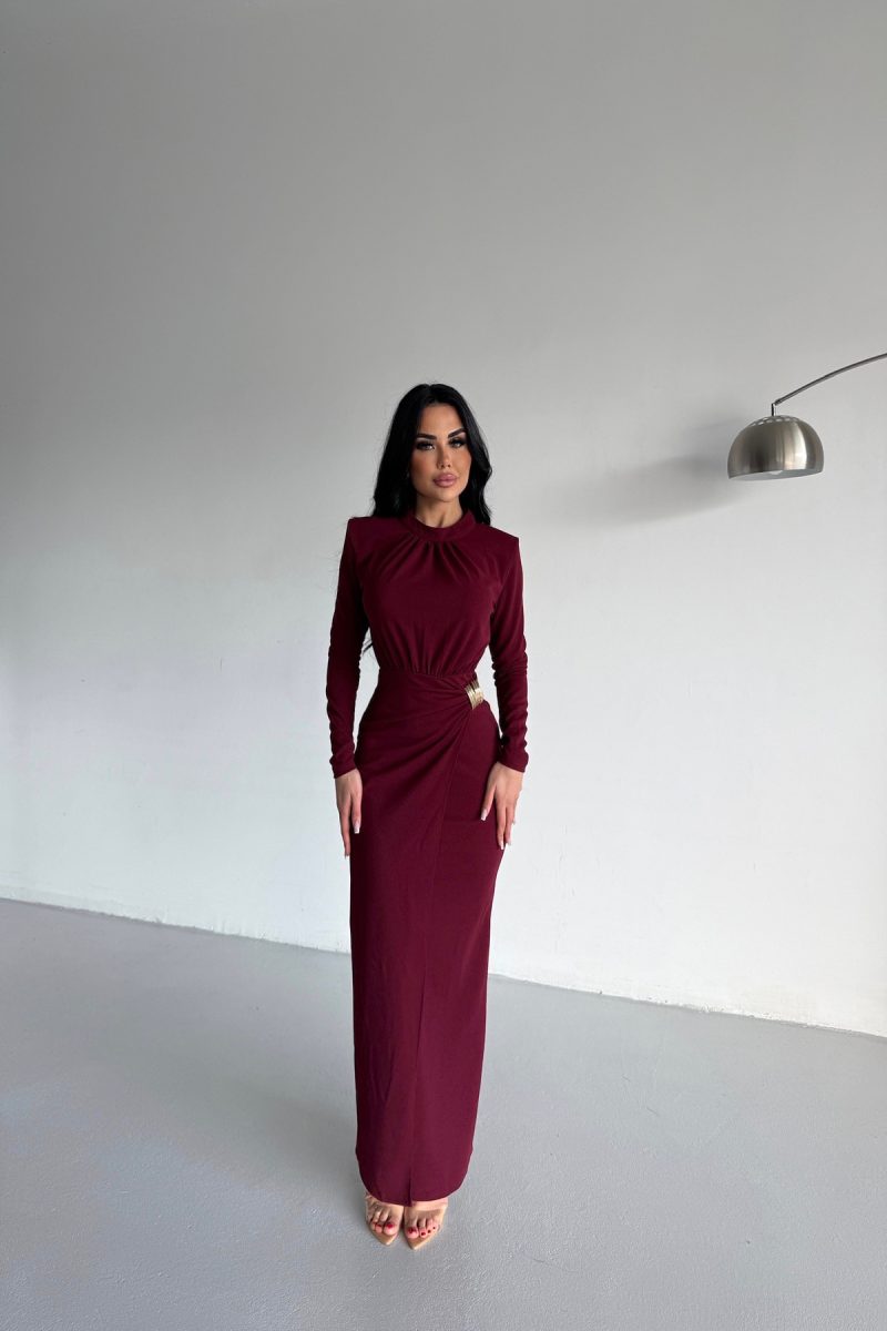 BİSİKLEY YAKA YANDAN TOKALI TASARIM ELBİSE