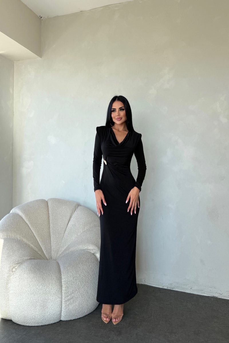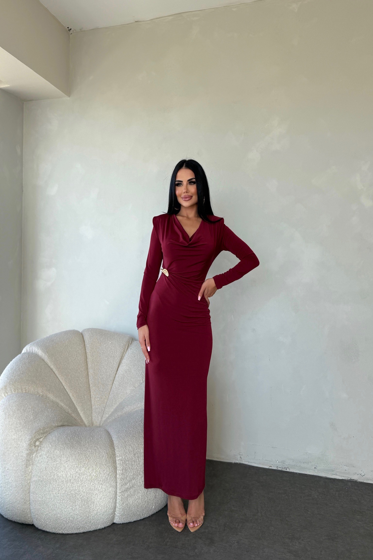 DEGAJE YAKA BEL BROŞLU ELBİSE