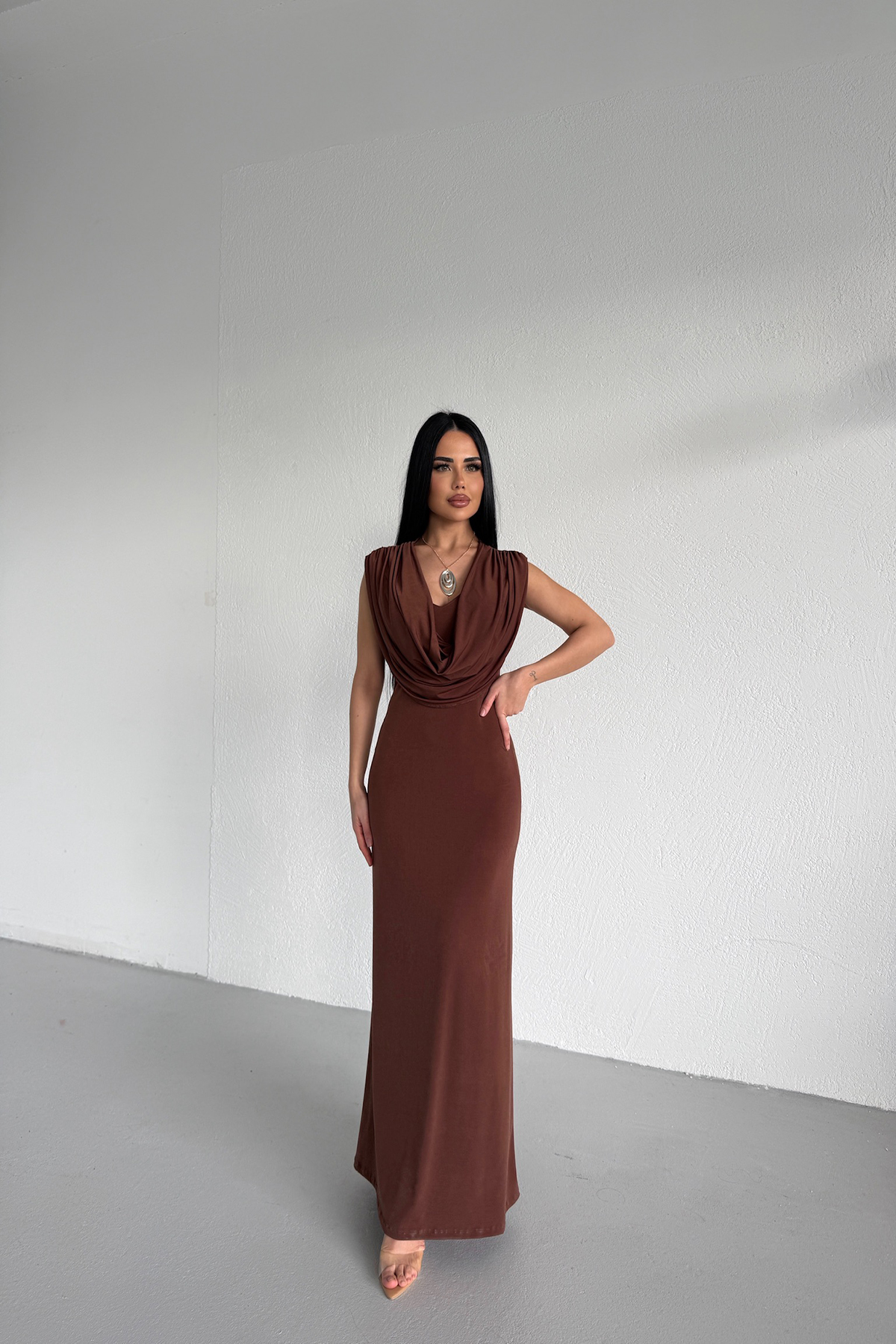DEGAJE YAKA KOLYELİ ELBİSE