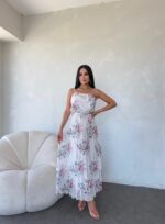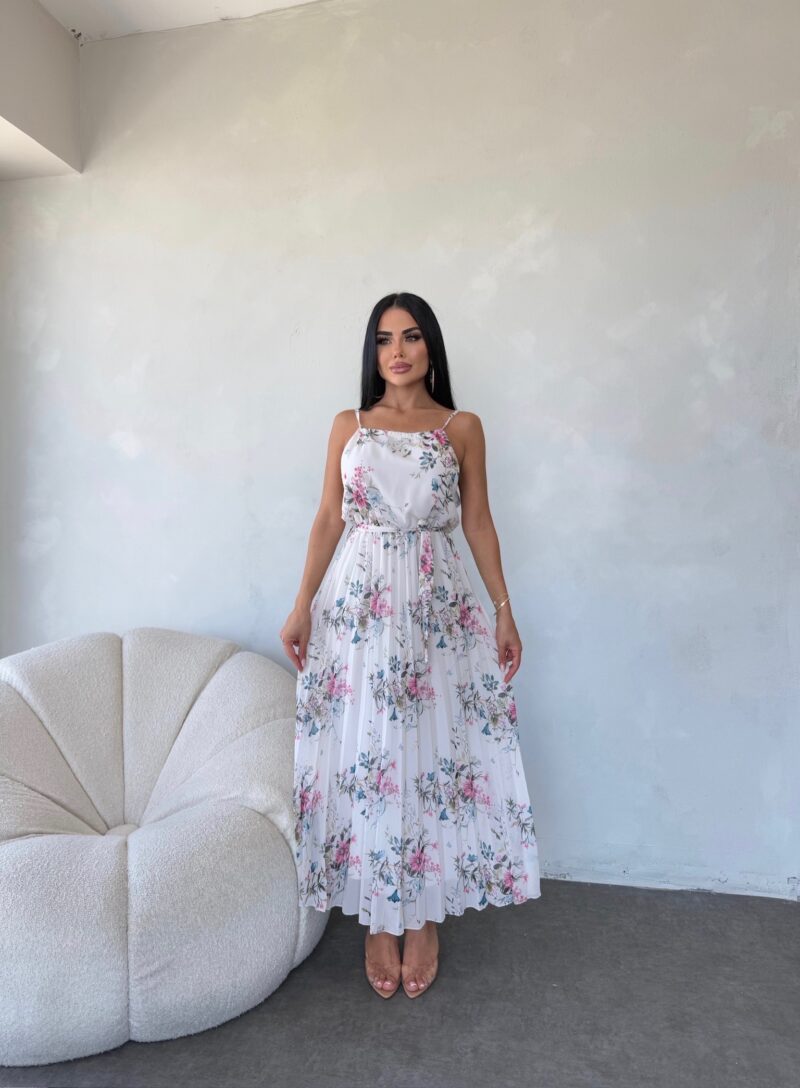 AYARLANA BİLİR ASKILI PİLİSELİ ŞİFON ELBİSE