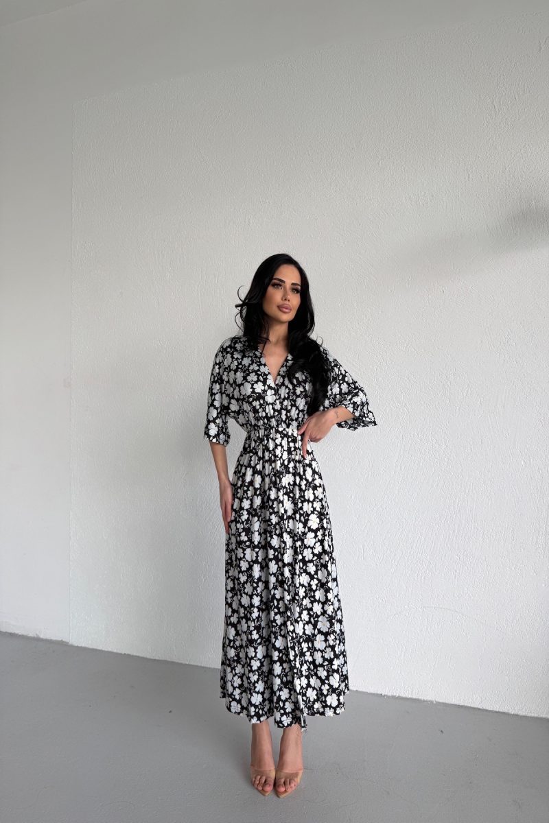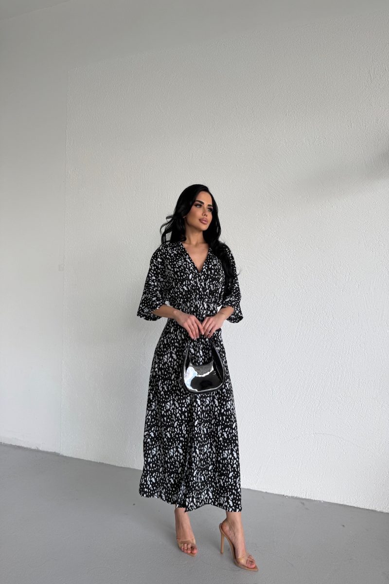 KRUVAZE YAKA BELDEN LASTİKLİ ELBİSE
