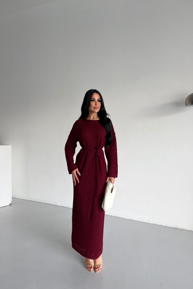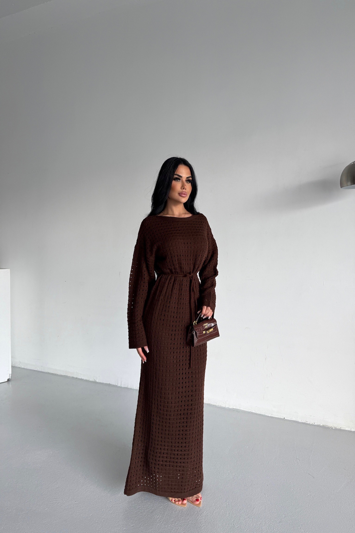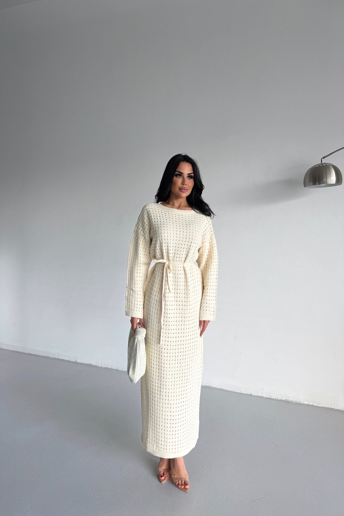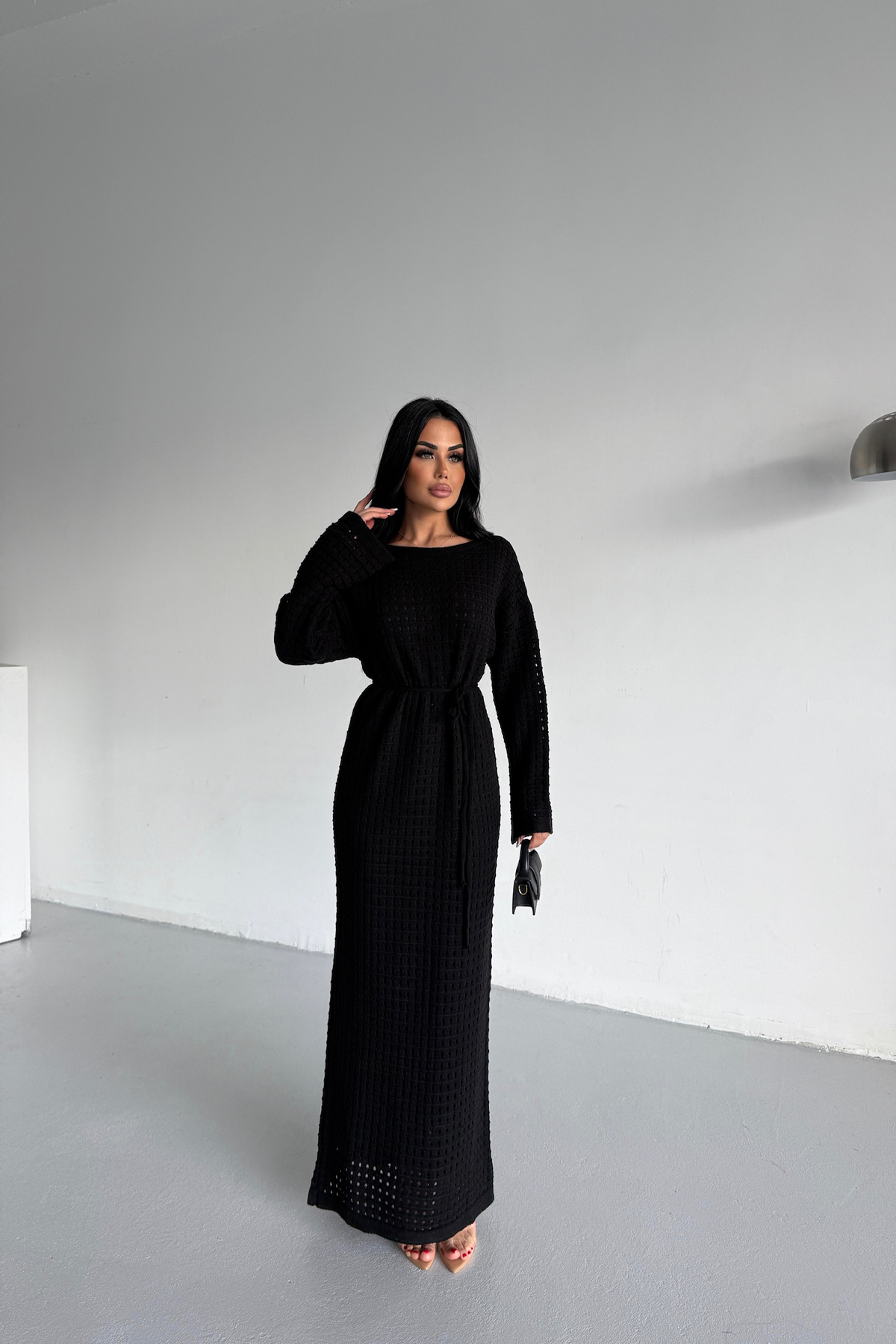 KUŞAK DETAYLI ASTARLI TRİKO ELBİSE STANDART BEDEN (S/M/L/XL) UYUMLUDUR