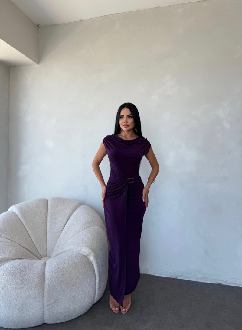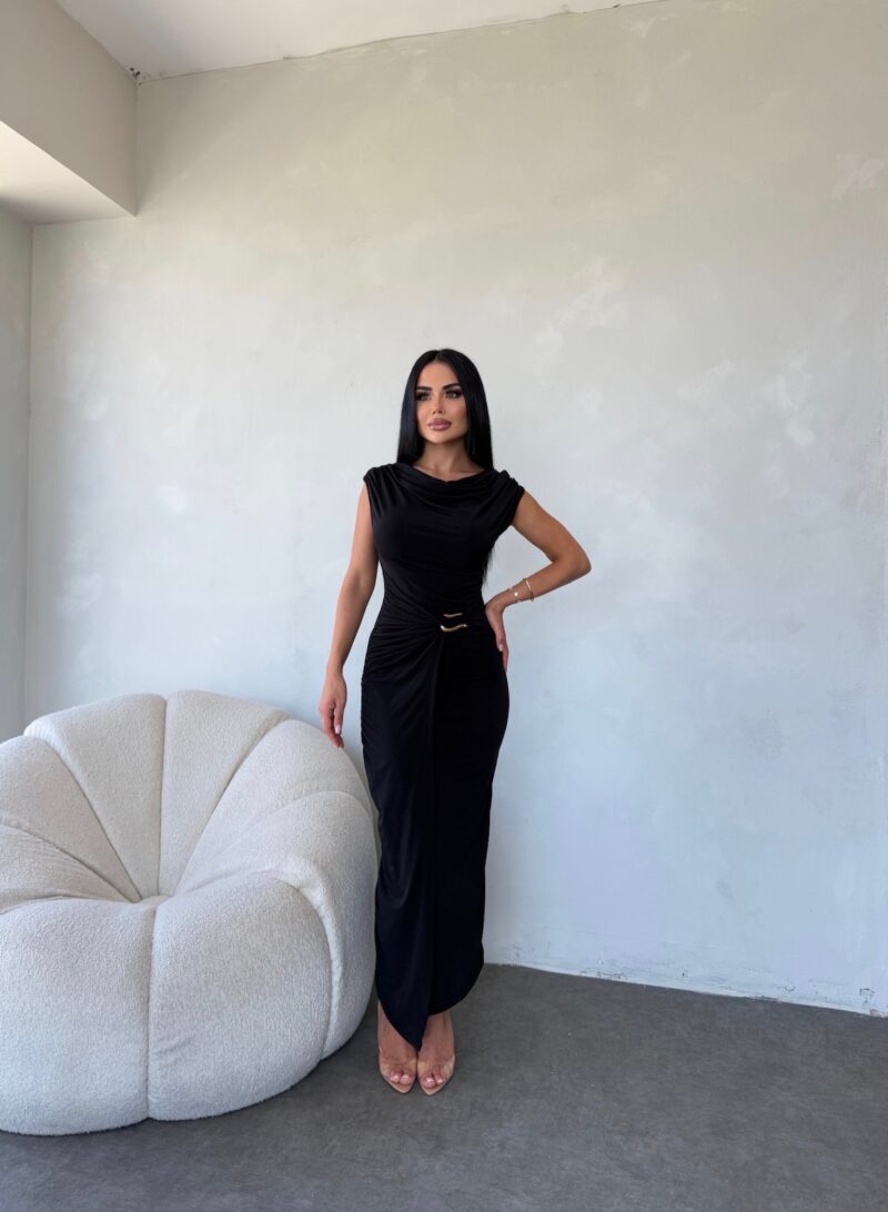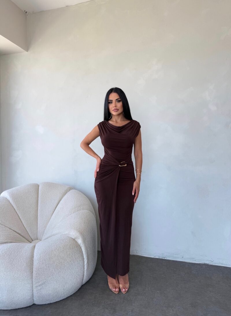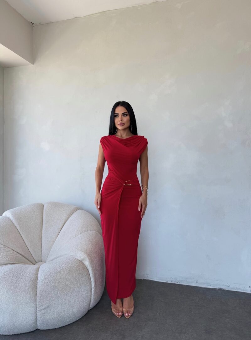 MADONNA YAKA BEL TOKA DETAYLI TASARIM ELBİSE