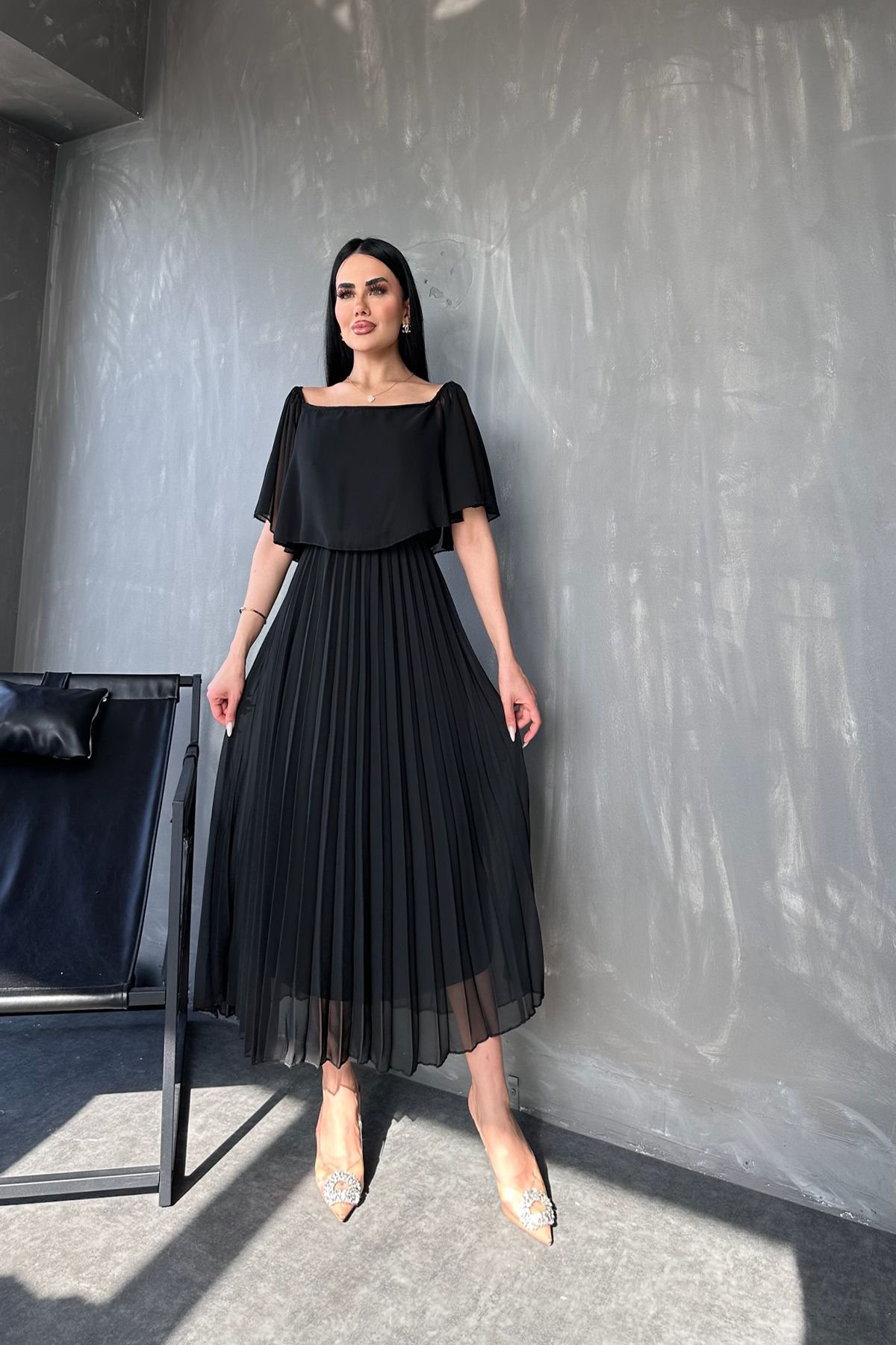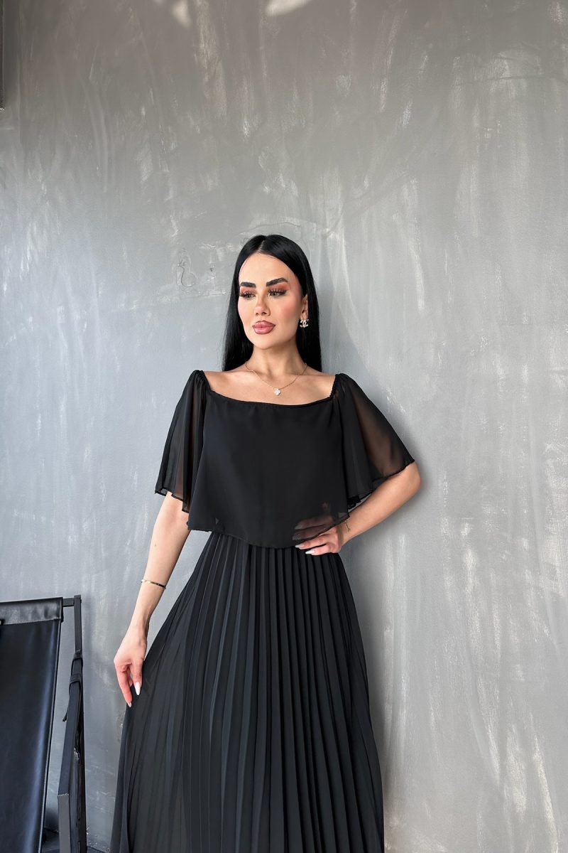 MADONNA YAKA PİLİSELİ ŞİFON ELBİSE