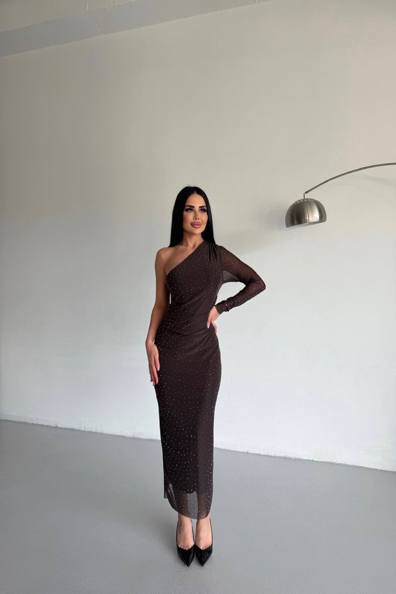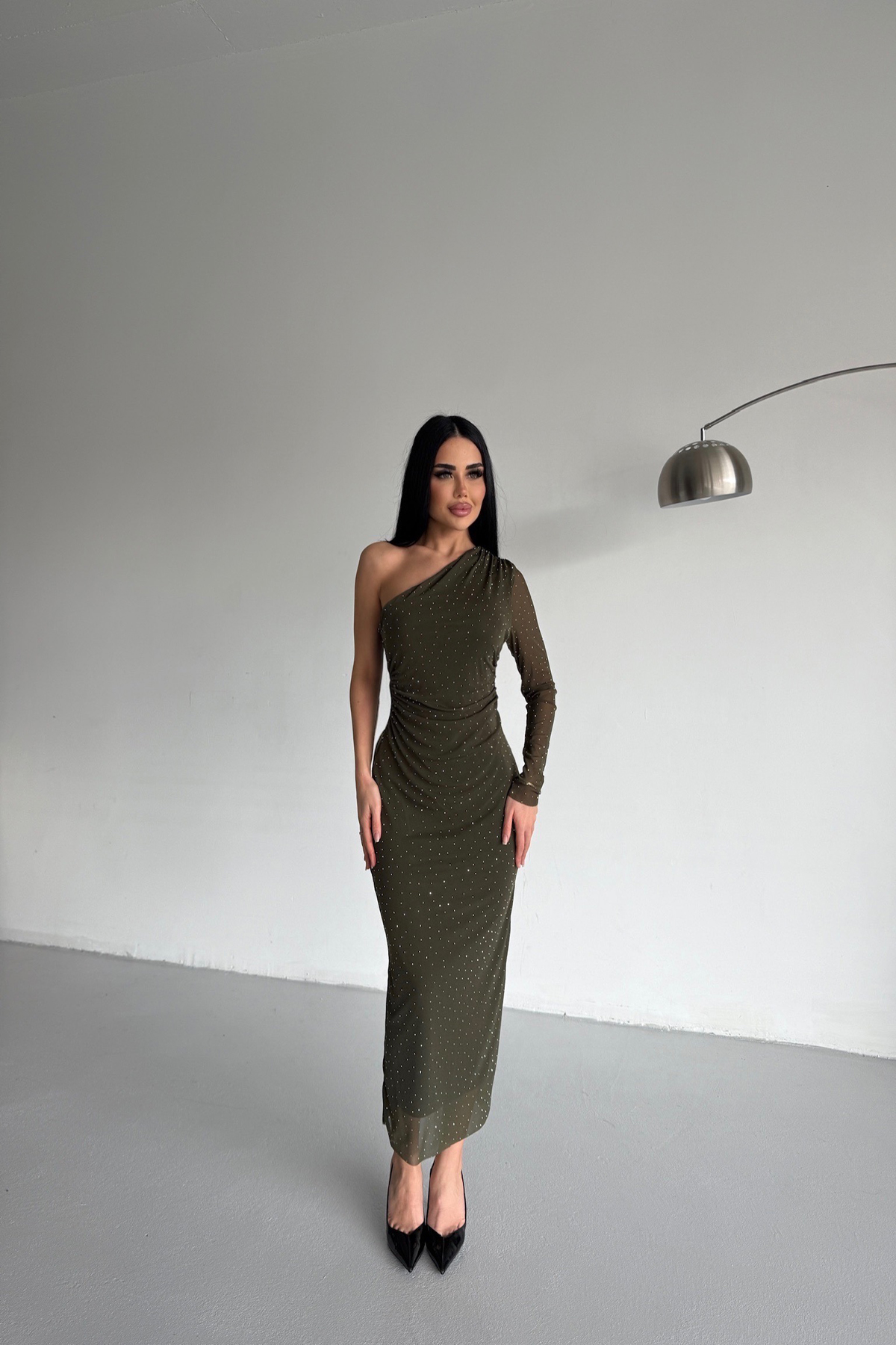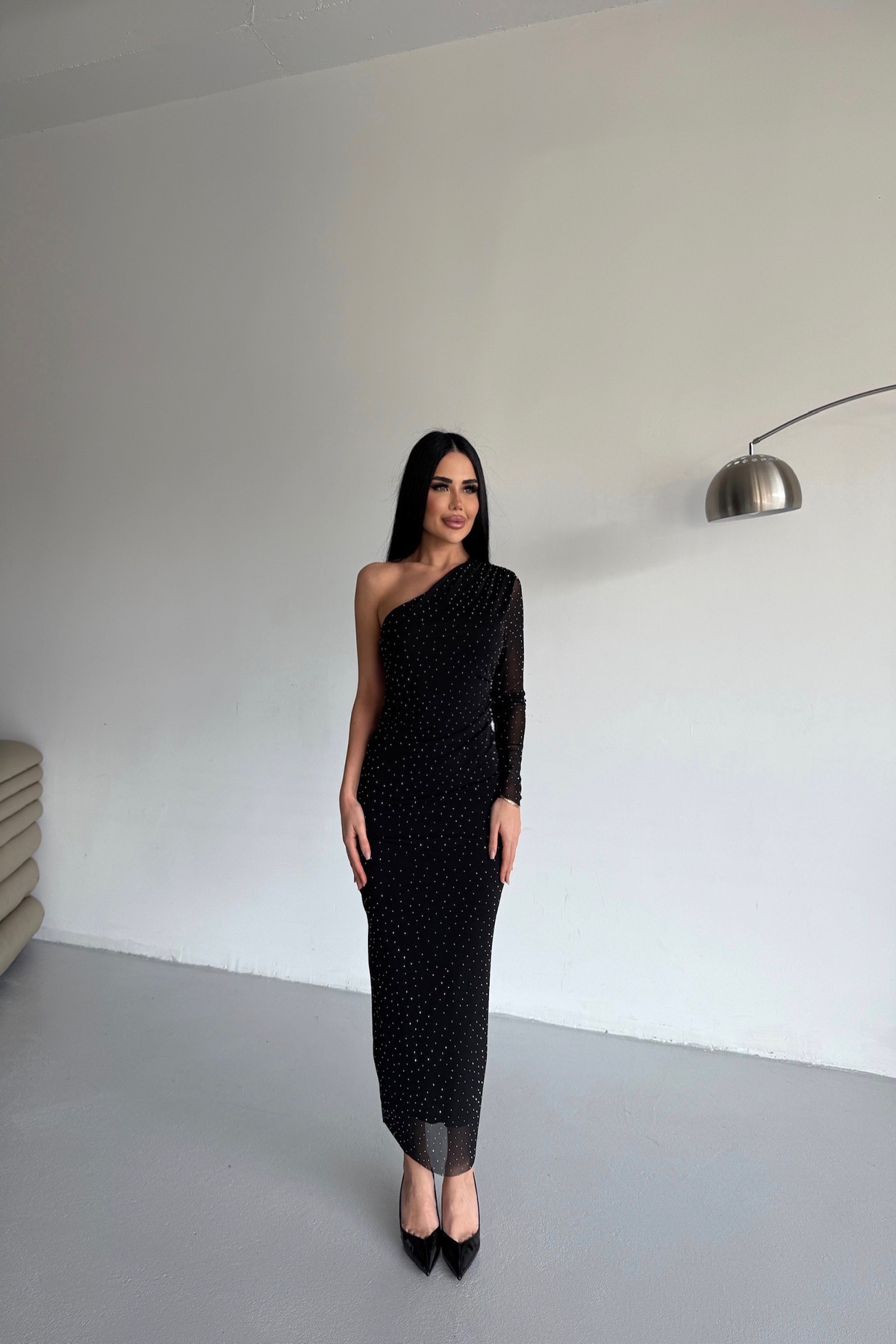 TEK OMUZ TAŞ İŞLEMELİ TÜL ELBİSE