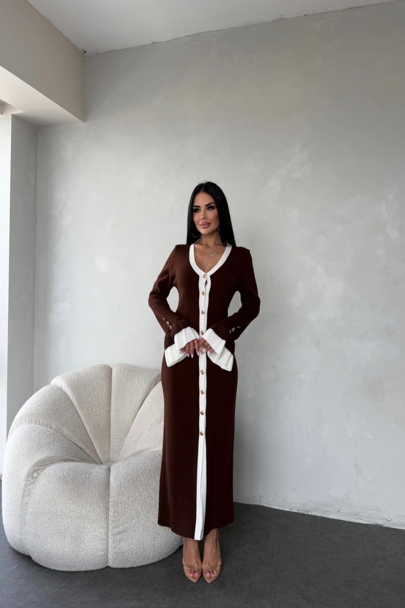 V YAKA ÖNÜ DÜĞMELİ TRİKO ELBİSE STANDART BEDEN (S/M/L/XL) UYUMLUDUR
